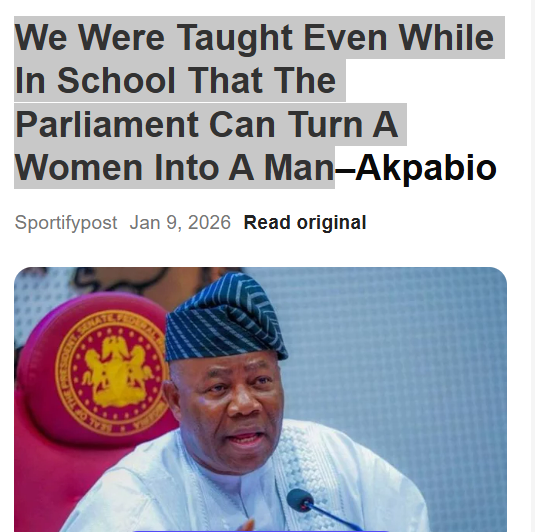 A post circulating on social media from the website www.sportifypost.com.ng claims that Nigeria’s Senate President, Senator Godswill Akpabio, stated: