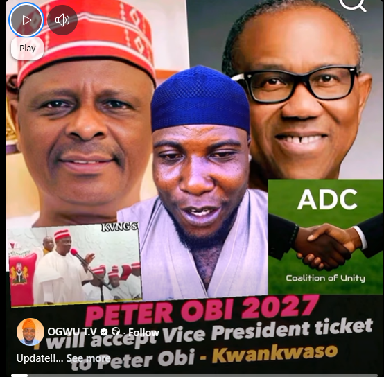 The video also includes a short clip showing Kwankwaso speaking to a crowd. The poster alleges that this clip is evidence that Kwankwaso has agreed to become Obi’s running mate.