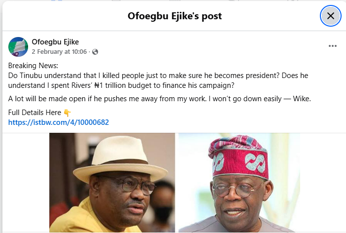 False/IncorrectNo proof for claim that Nigeria’s Labour Party ordered Peter Obi to apologise to president Bola Tinubu Admin Imeso2 years ago2 years ago01 mins No proof for claim that Nigeria’s Labour Party ordered Peter Obi to apologise to president Bola Tinubu Verified Post Views: 1,104 Share this: Click to share on X (Opens in new window) X Click to share on Facebook (Opens in new window) Facebook Click to share on LinkedIn (Opens in new window) LinkedIn Click to share on WhatsApp (Opens in new window) WhatsApp Like this:Like Loading... Related Post navigation Previous: No, pro-Biafra agitation didn’t stop governorship election in Nigeria’s Imo stateNext: Video does not show Nigerian senator Dino Melaye fainting after hearing election result – event shown from 2019 Leave a Reply Cancel replyYour email address will not be published. Required fields are marked *Comment * Name Email Website Save my name, email, and website in this browser for the next time I comment.